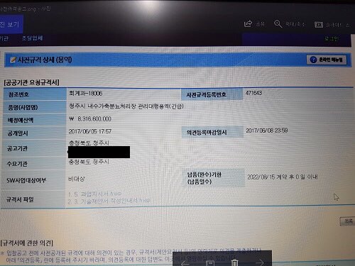 아울러 회계과는 하수처리과로부터 입찰 참가자격 기준은 물론 세부평가 내용 등 구체적인 내용 모두를 전달 받았음에도, 알맹이는 누락시키고 ‘과업지시서’와 ‘기술제안서 작성 안내서’만 공개한 것입니다.